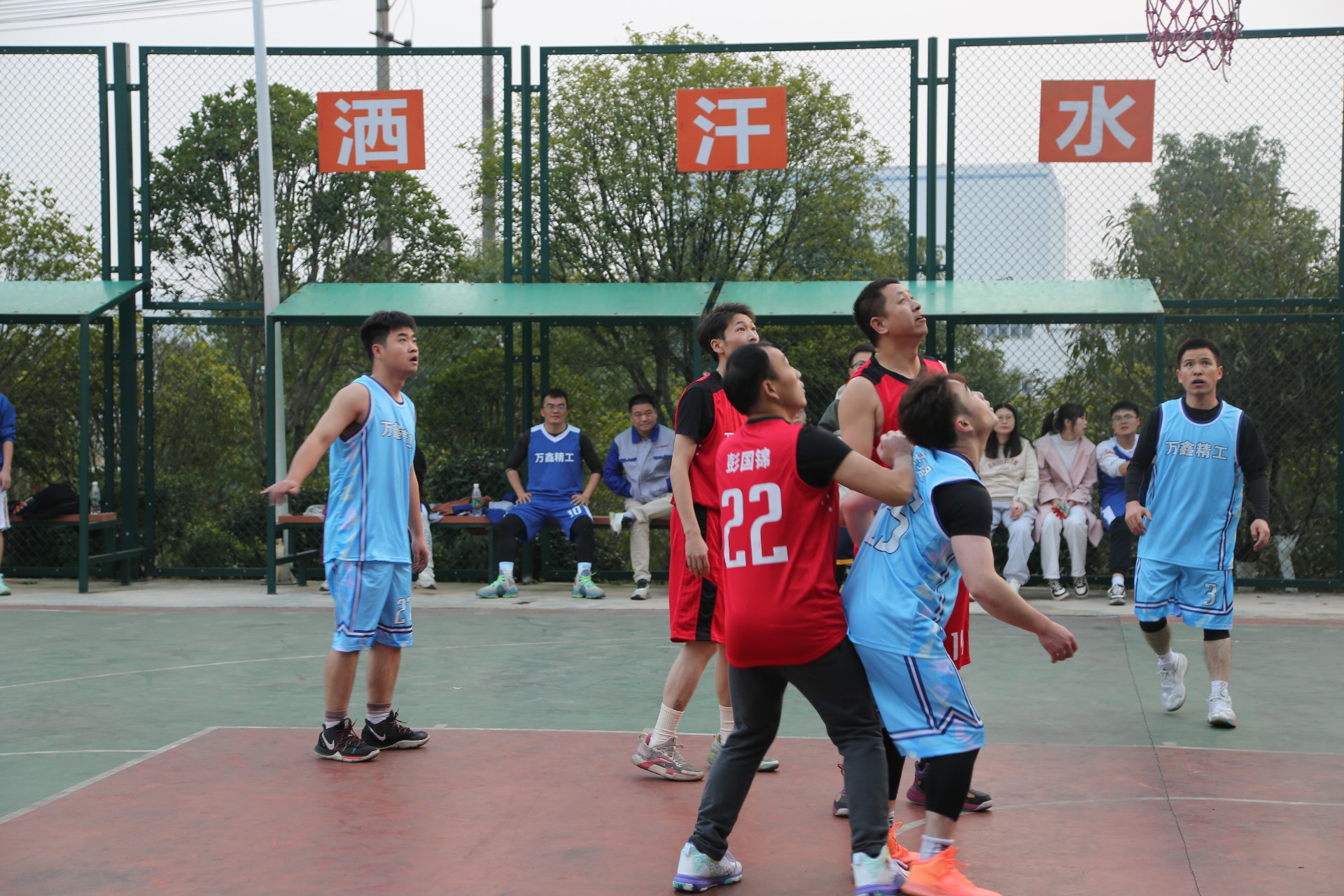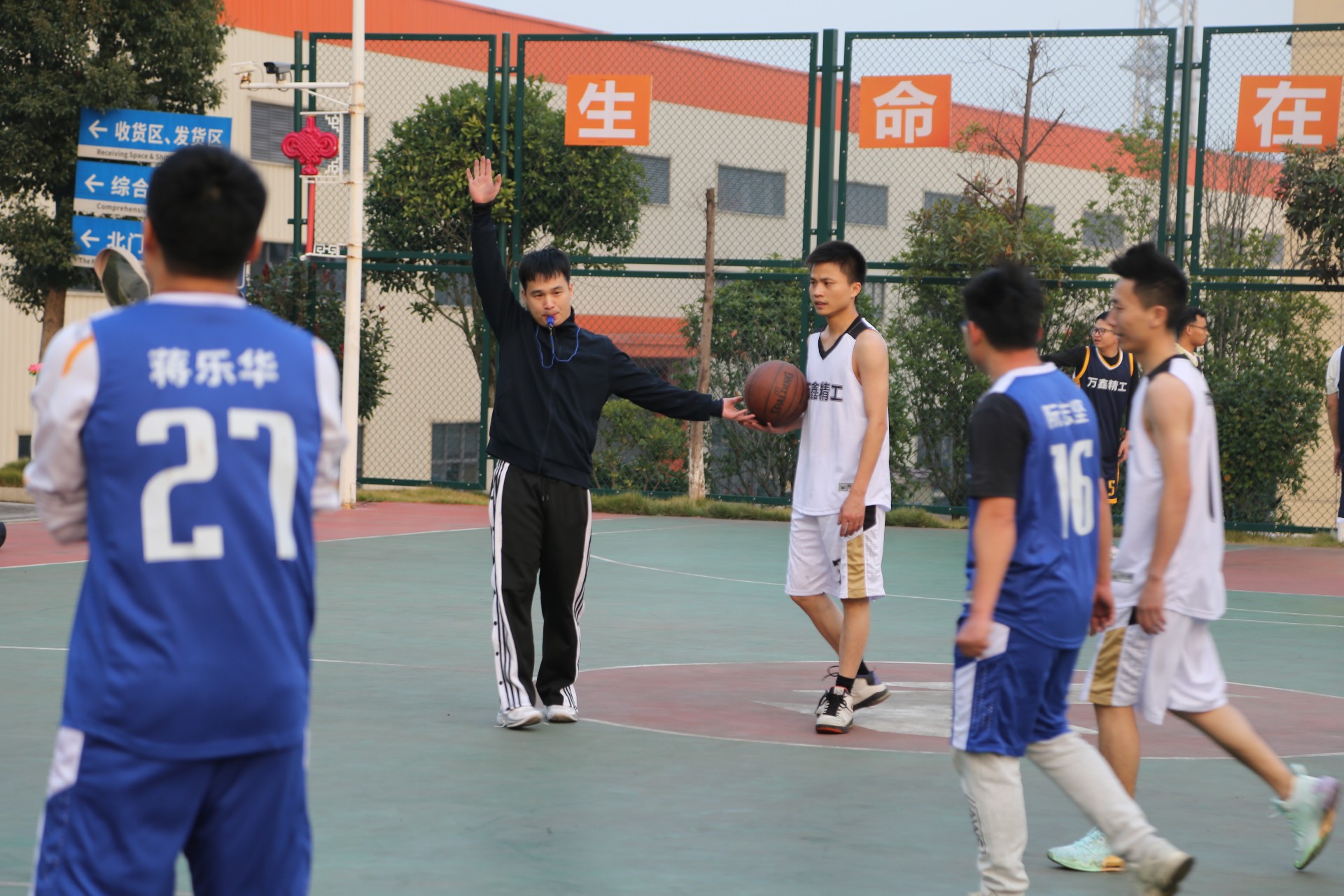 本次比赛由万鑫精工轻工、重工、精密、精密零部件事业部以及行政、营销中心派出各自篮球精锐,组成八支参赛队伍,分为两组各四支队伍进行小组赛,决出四强进入下一轮比赛。